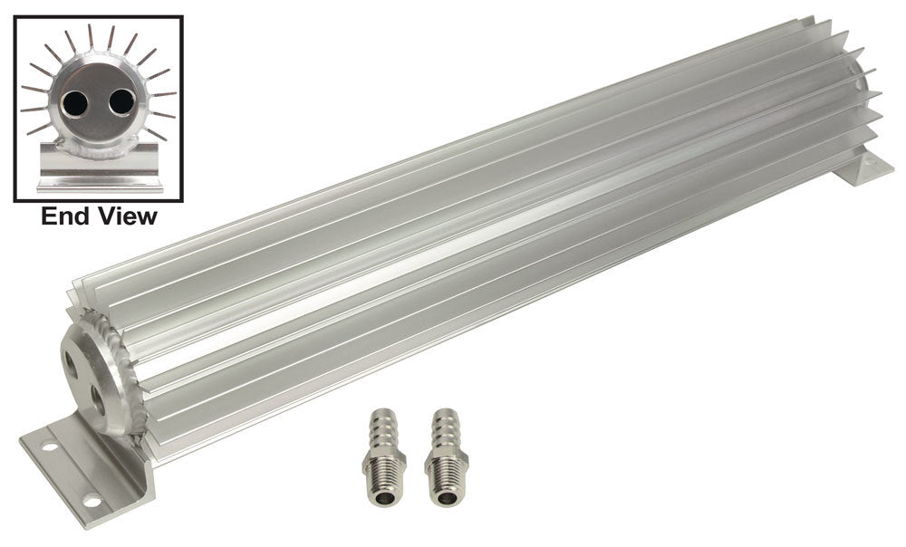 Fluid Cooler - Dual Passenger - 17.25 x 2.188 x 3.25 in - Heat Sink - 1/4 in NPT Female Inlet / Outlet - 3/8 in Hose Barb Adapters - Aluminum - Natural - Universal - Each