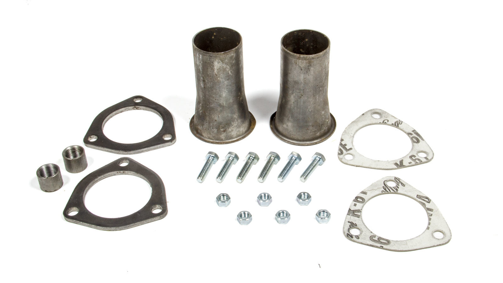 Collector Reducer - Husler Race - 2-1/2 in Inlet to 2 in Outlet - 3-Bolt Flange - Gaskets - Steel - Natural - Pair