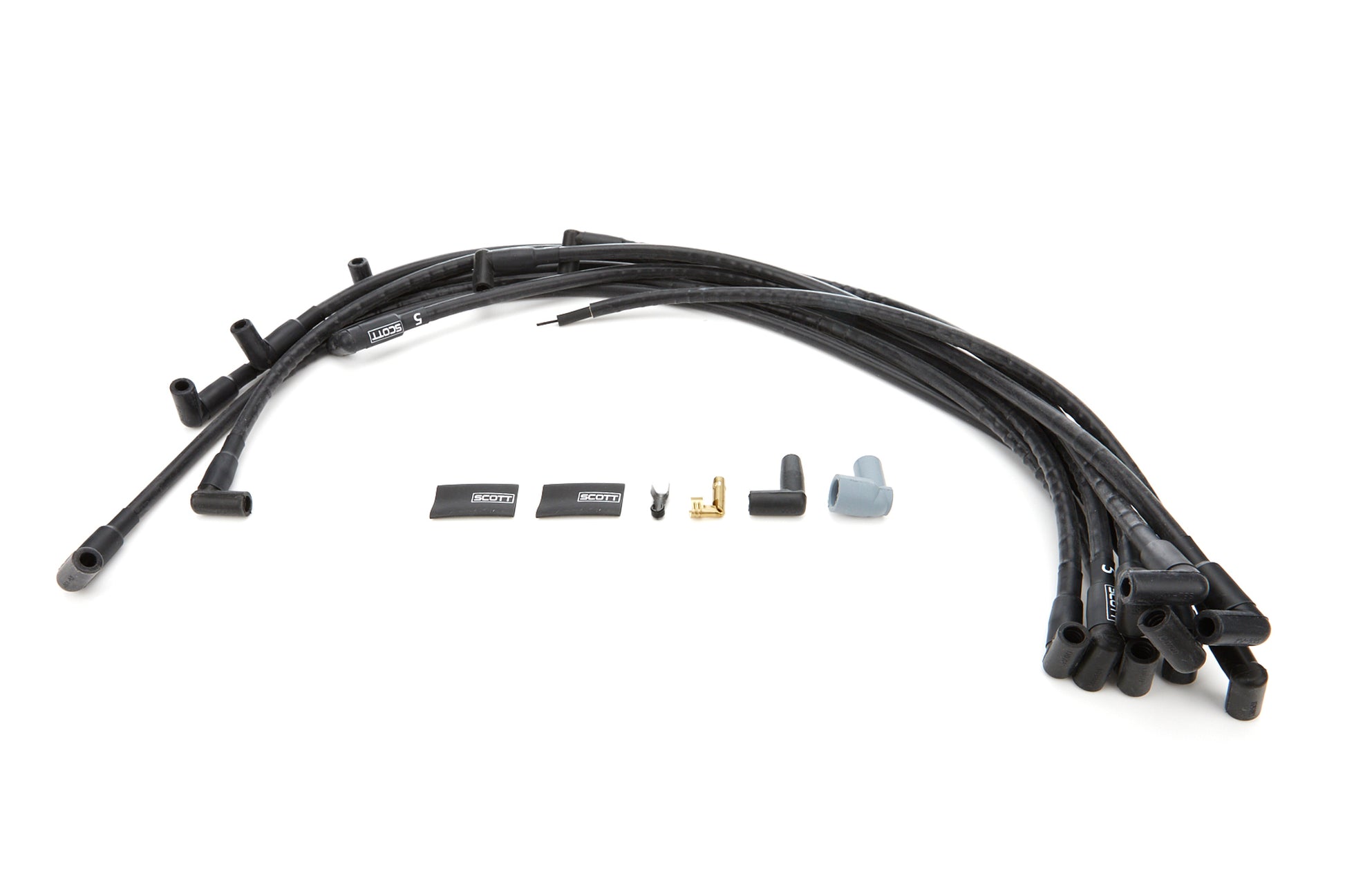 Spark Plug Wire Set - High Performance - Spiral Core - 10 mm - Black - 90 Degree Plug Boots - HEI Style - Under Headers - Big Block Chevy - Kit