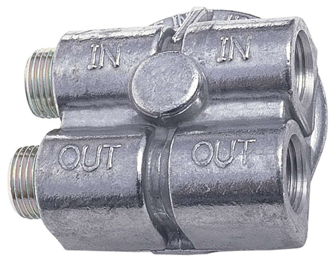 Oil Filter Adapter - Bypass - 90 Degree - 3/4-16 in Center Thread - 1/2 in NPT Female Inlet - 1/2 in NPT Female Outlet - Aluminum - Natural - Various Applications - Each